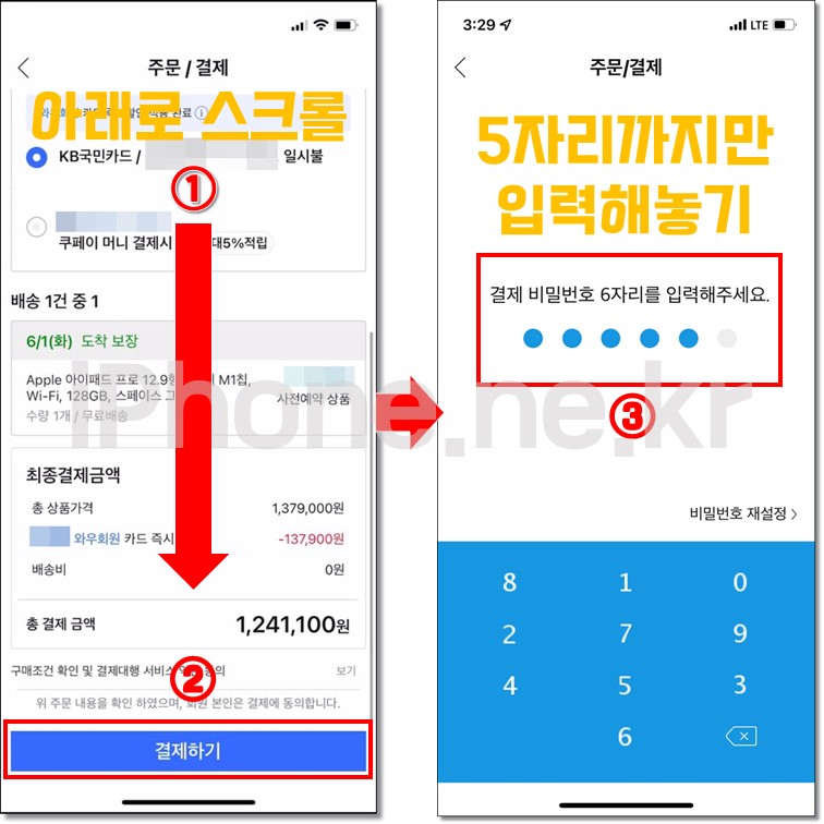 - ③결제 비밀번호 5자리까지만 입력해 놓기(아직 결제하면 안 됨)